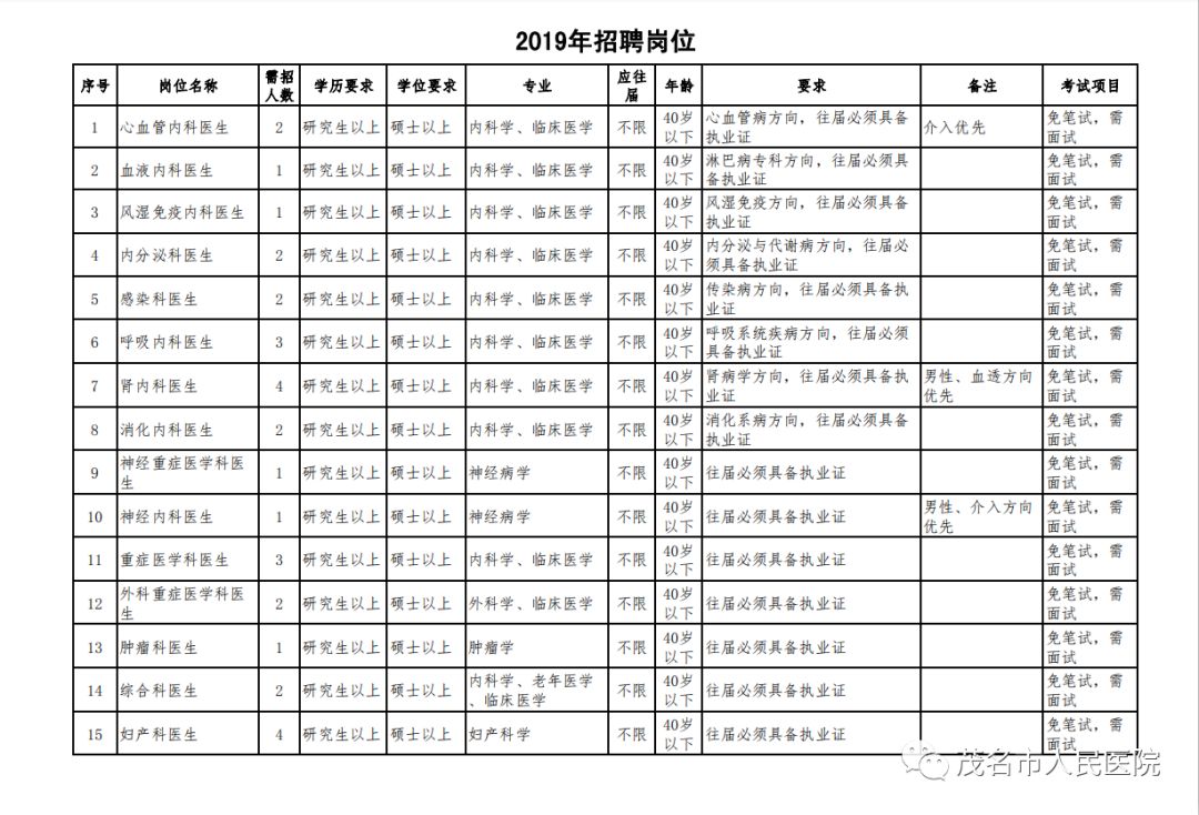 2019年茂名市人民医院医务人员招聘启事 |