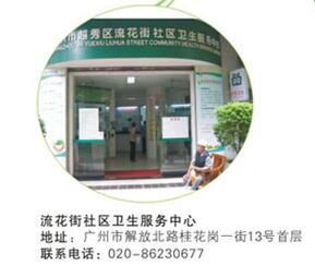 流花街社区卫生服务中心地址:广州市解放北路桂花岗东一号综合楼1—4层 联系电话:86230677