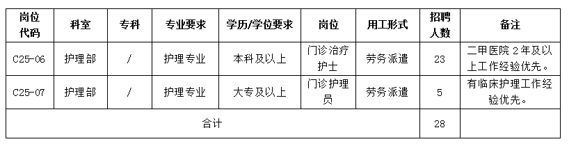 (一)本次招聘录取人员与第三方劳务派遣公司签订劳动合同,派遣至我院花都院区门诊及各临床医技科室工作。