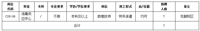 因花都院区消毒供应中心工作需要,面向社会公开招聘第三方劳务派遣助理技师7名,现将有关事项公布如下: